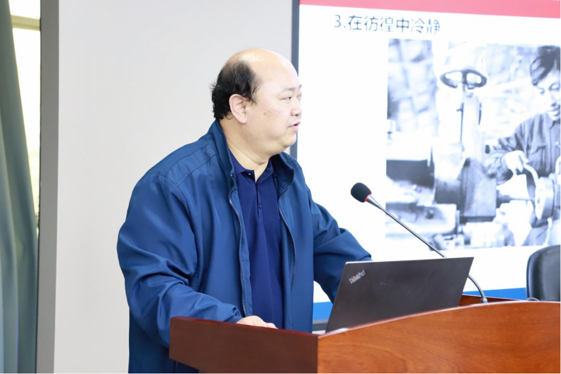 10月23日,系列讲座第六讲在中心校区东荣大厦904会议室举办。本次活动邀请鞍钢集团党委宣传部(企业文化部、统战部)部长、高级政工师聂振勇老师以“传承红色基因,弘扬英模精神——为强国建设民族复兴伟业贡献青春力量”为题向学院师生进行专题授课。学院领导班子、两委委员及各系师生党员共同参加本次讲座,讲座由学院党委副书记兼副院长朱大卫主持。