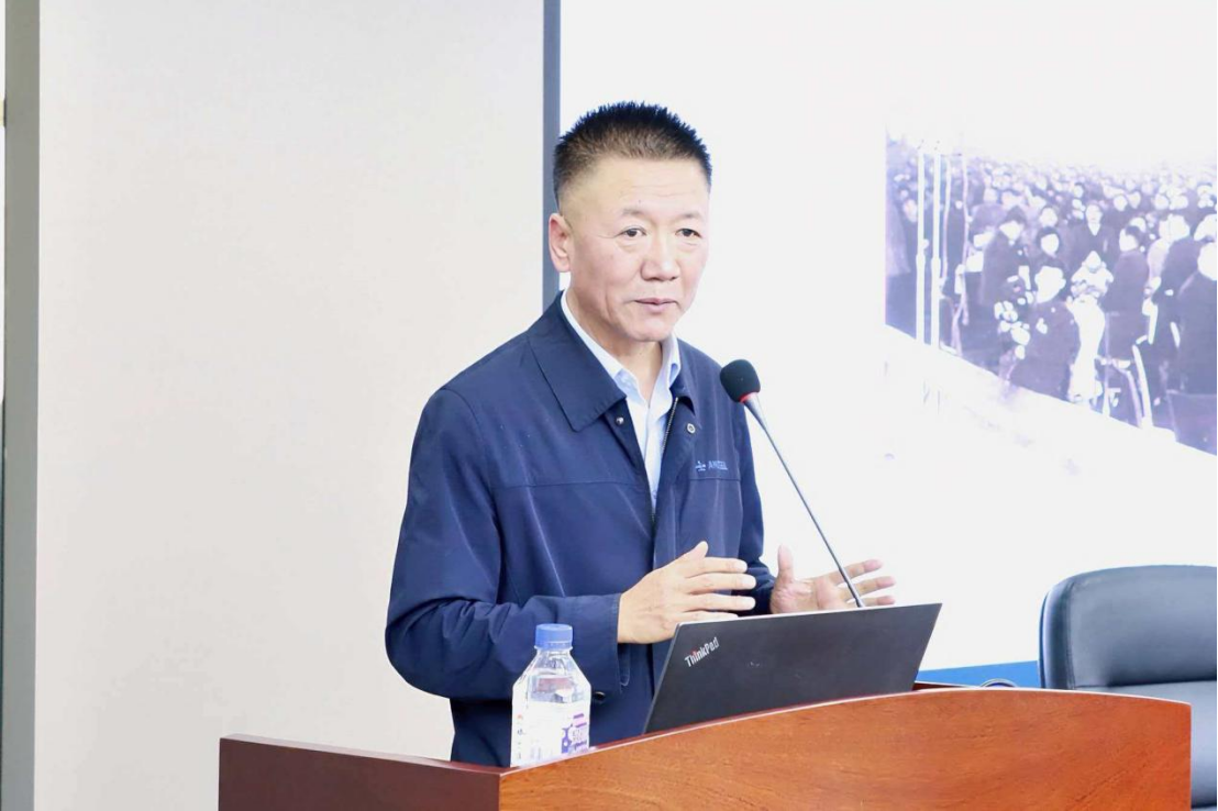 接着,聂振勇老师围绕“鞍钢英模:时代精神的标尺”主题,向在场师生们介绍鞍钢集团成长历程中涌现的多位劳动模范和优秀代表。第一代钢铁人孟泰,“走在时间前面”的王崇伦,为人民无私奉献的雷锋,“当代雷锋”郭明义,“当代工人发明家”李超,以及更多优秀的鞍钢工人们,他们是鞍钢精神的坚定实践者,更是时代精神的标尺,他们的事迹指引着我们不断前进。