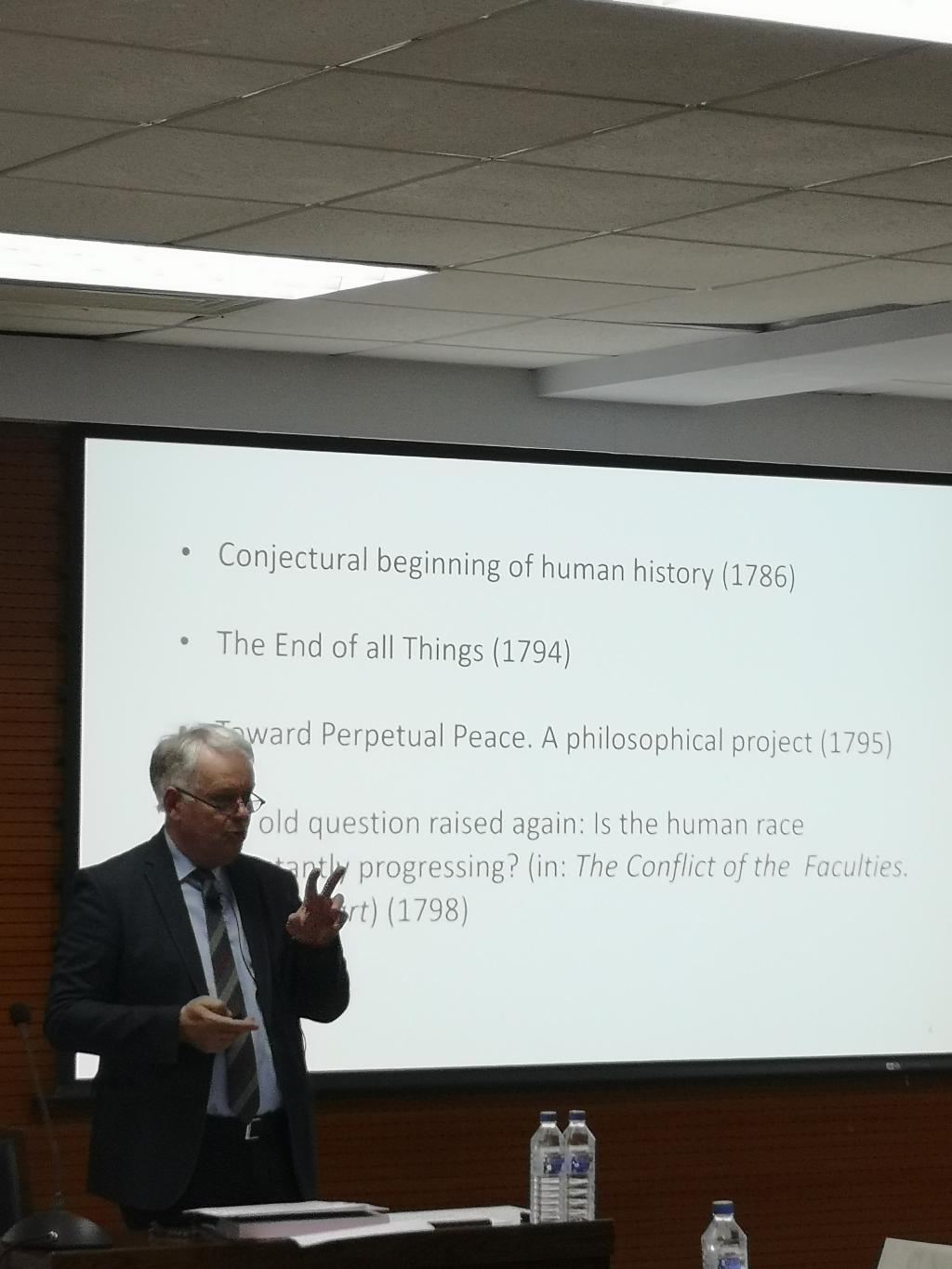 2019年5月31日,比利时鲁汶大学哲学高等研究所荣誉教授、北京大学特邀教授,国际知名学者、康德哲学专家、德国古典哲学专家Martin Moors教授应邀为我院师生做题为“Ideas on Kant’s Idea of a Universal History with a Cosmopolitan Aim”的学术讲座,我系外籍教师Nicholas Rimell主持了本次讲座。