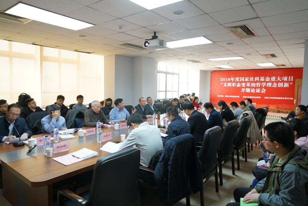 开题报告会由南开大学王南湜教授主持。项目首席专家王庆丰教授从“为什么研究”、“研究什么”、“如何开展研究”等三方面代表课题组进行汇报。随后,子课题负责人吉林大学白刚教授、黑龙江大学高云涌教授、东北师范大学涂良川教授、吉林大学李慧娟教授、吉林大学田冠浩教授等分别对相关子课题的主要内容与研究思路进行了深入阐述。这一课题以探索人类文明变革与哲学理念创新的关系为基础,以马克思的哲学革命所实现的哲学理念创新为指导,以对“现代性”的批判性反思和对中国特色社会主义的哲学探索为主要内容,以制度文明和文化发展理念创新为研究思路,以创建人类文明新形态的哲学理念自觉为目标,引领当代中国的哲学基础理论研究,塑造和引导新的时代精神。围绕着文明新形态的哲学理念、文明形态变革与人的本性自觉、作为人类文明新形态的共产主义等重要问题,该课题致力于为创建人类文明新形态提供“新理念”,为中国特色社会主义提供“思想力”,为社会发展提供“新服务”,体现了理念创新作为推动人类文明形态变革的当代中国哲学的重要使命和责任。