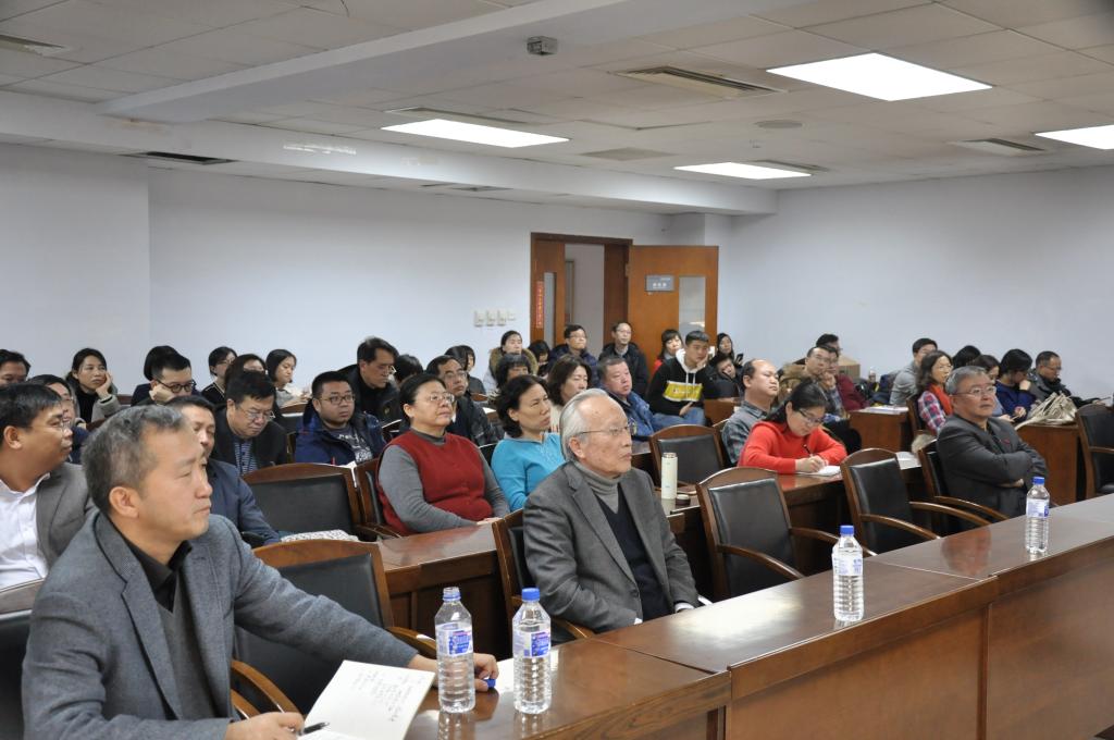 汇报结束后,由哲学社会学资深教授、哲学一流学科领导小组组长孙正聿教授讲话。孙正聿教授指出,建设一流大学、一流学科,我们要明确建设目标,“取法乎上,仅得乎中”,“文章千古训,得失寸心知”,主要在于自身实力的提升。要在去年取得的一定成绩上,对自己取得的成绩进行追问,要保持持续发展,不能满足于“一流学科”,更要建设好“一流学科”,不仅求其名,而且求其实,对于学院和个人都要如此。要认真摸清家底,体会其中问题,创新建设思路,抓好一流学科必备的资源、方向、成果和团队等方面工作。孙老师强调要想真正保证建成一流学科,要有一流引领作用的研究方向,一流的学术团队,尤其青年教师要有洞察力、概括力和思想力,全身心投入,踏实努力,建设好“一流学科”。