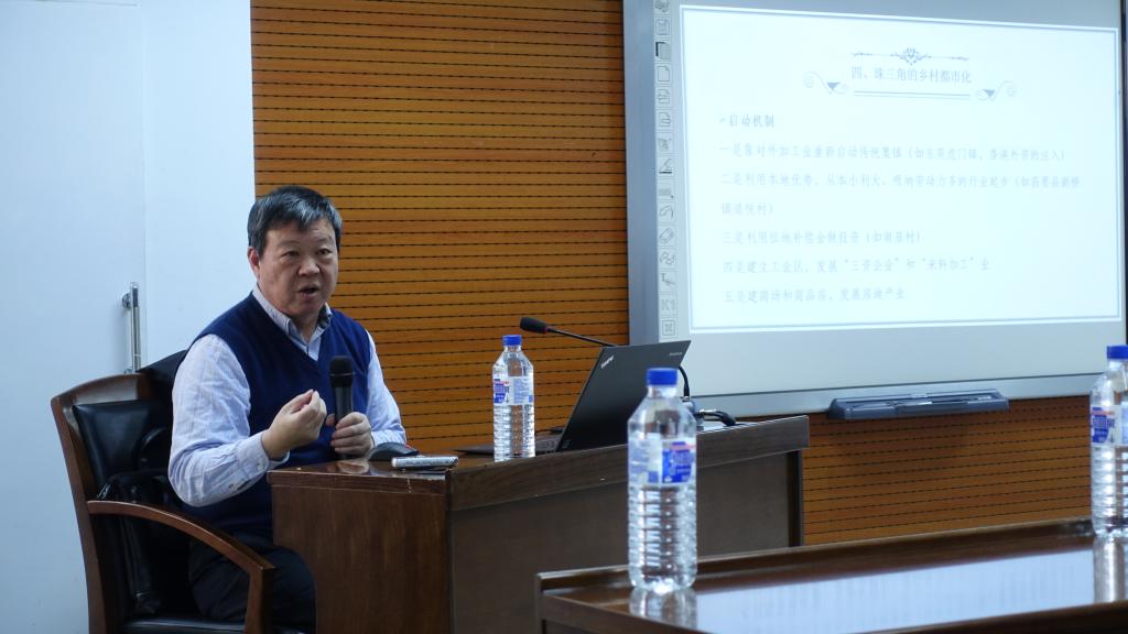 周大鸣教授以珠三角为例,讲述了改革开放40年来该地区告别乡土社会、向城市社会转型的发展历程。珠三角地区的乡村都市化是政府主导与地区自发增长相结合、“自下而上”与“自上而下”共同发展的模式。周大鸣教授重点讲述了“城中村”和城市远郊乡村的改造与发展,对其发展所带来的问题做了视角独到的分析。对于非珠三角地区的农村发展,周大鸣教授认为,政府引导、产业转移和培育、城市化带动是非珠三角地区农村发展的主要动力。最后,周大鸣教授提出新时代广东的乡村振兴战略,深刻剖析了乡土社会发展新的定位与核心问题,并进一步指出广东农村发展实践将为我国解决区域和城乡不平衡不充分发展的矛盾提供经验。