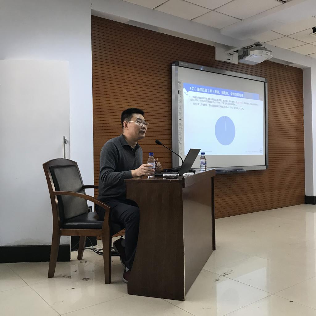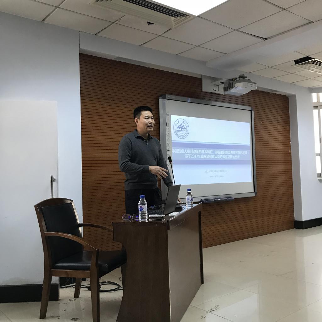 2018年11月3日上午9点,哲学社会学院学术名家讲座第28场在东荣大厦9楼会议室举行。中国残疾人事业发展研究会副秘书长、中国残疾人事业发展研究会社会工作专业委员会副主任委员、济南市残疾人福利基金会理事长、山东大学残疾人事业发展研究中心主任、山东大学哲学与社会发展学院博士生导师葛忠明教授,作了题为“中国残疾人福利政策的基本特征及未来可能的发展方向:基于山东省2017年动态更新数据的分析”的学术讲座。劳动与社会保障系系主任董才生教授主持了本场讲座。