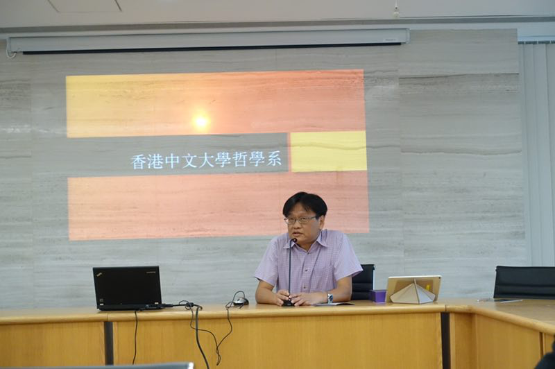 随后,代表团一行来到香港大学哲学系,香港中文大学文学院副院长郑宗义教授和香港中文大学哲学系主任张锦青教授对我院代表团进行了接见并与我院师生进行了会谈。张锦青教授首先向我校师生介绍了香港中文大学哲学系的基本情况,张教授讲到,目前港中文哲学系研究领域覆盖广泛,包括中国哲学、德国哲学、古希腊哲学、社会及政治哲学等多个方面,该系教员较多拥有在海外高等院校完成高级学位的背景。目前哲学系不仅承担专业的教学,而且承担者整个学校的通识教育工作。在对外交流方面,港中文哲学系已经与海外多所知名院校及内地多所院校建立合作关系。同时,港中文哲学系目前亦主持发行了多种国际权威学术期刊。在张教授介绍完港中文哲学系的情况后,我院李海峰教授代表吉林大学哲学社会学院,向港方介绍了吉林大学哲学系的历史传统及现今发展状况。在介绍完两系的基本情况后,香港中文大学文学院副院长、哲学系教授郑宗义就香港中文大学哲学系的本科生、研究生教育情况及招生要求等向我方给予介绍。随后,李海峰教授就相关内容作了补充发言。在学生提问环节,我院学生就相关学术问题及交流政策等进行了提问,港方两位教授也做了详细的解答。