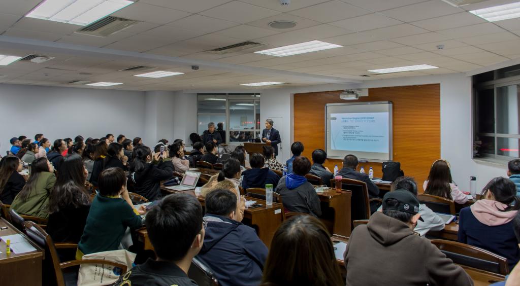 最后,讲座在掌声中拉下帷幕,担当此次讲座韩国语翻译的哲学系元永浩教授做了简短的总结。他认为韩相震教授自身是一个十分具有全球性的知名学者,他游走于美国,法国,德国,阿根廷等欧美和拉美国家,试图将东亚的儒家思想和佛教思想等东亚思想传统置于全球化变迁的脉络中深入研究,特别是发现东西方社会思想产生共鸣的本体论和认识论条件,最后聚焦于吉林大学哲学社会学院已故哲学家高清海先生的“类哲学”思想,并试图挖掘其背后的世界主义的思想意义,对于将吉林大学的哲学传统向全世界传播起到重要作用,同时对于将中国的哲学社会思想纳入全球风险社会治理体系去反思也具有十分重要的意义。