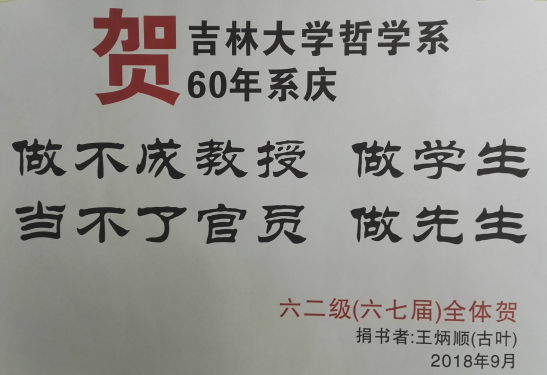 假期伊始,我院六二级系友王炳顺先生将个人收藏的几百本图书赠送给学院资料室,并代表六二级全体学生赠送给学院三幅名人字画,祝贺吉林大学哲学系建系60周年。