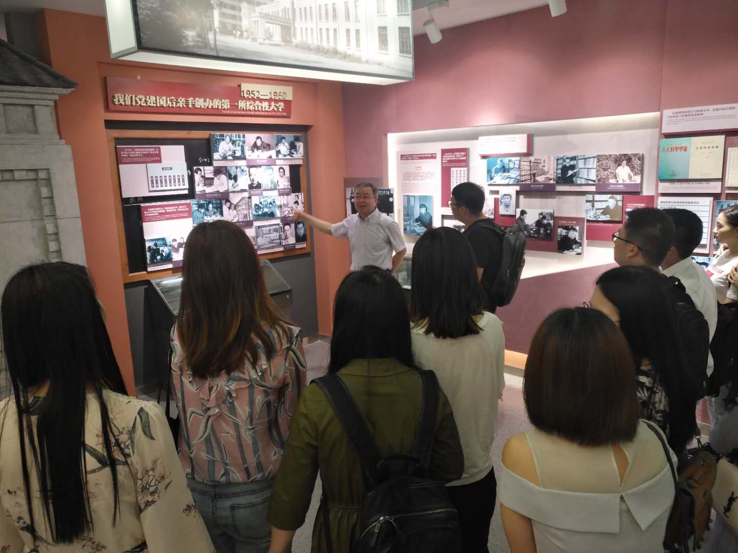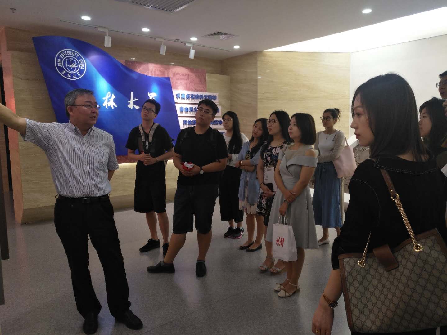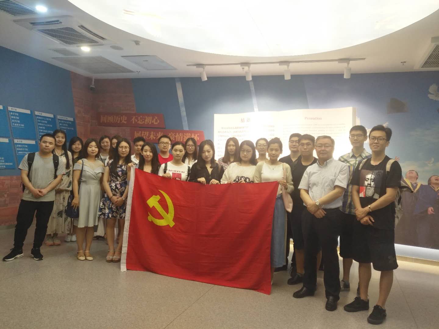 2018年6月25日上午九点,在中心校区鼎新校史馆,吉林大学哲学社会学院党委书记全华老师带领2018届全体毕业生党员参观了校史馆,并进行了最后一次党课教育活动。参加本次党课的还有哲学社会学院党办主任张洁老师、2018届全体毕业生党员。