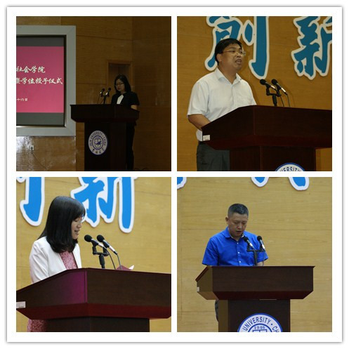 名单公布后,哲学社会学院杰出校友宋志平女士进行了发言,通过阐述自己艰苦创业的亲身经历,鼓励同学们步入社会后对母校心怀感恩,继续努力,不断完善自己,并在最后祝愿同学们能够实现事业和家庭上取得成功。白刚教授代表全体教师进行了发言。白刚教授从“有哲学的哲学系”出发,与自己的求学经历、教学经历和生活经历相结合,表达了对2018届毕业生的殷切希望和美好祝福,更鼓舞同学们将哲学社会学院求知探索的精神继续发扬到日后的学习、工作和生活之中。