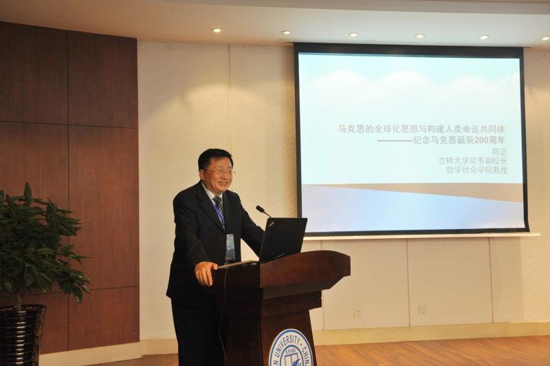 本次会议开幕式吉林大学哲学社会学院副院长曲红梅教授主持,吉林大学常务副校长邴正教授致开幕辞并发言。邴校长向与会学者们介绍了吉林大学作为一所有特色、有传统的高校的发展历史。在致辞中,邴正校长提出自古希腊以来哲学就是智慧的象征,作为时代精神的精华,哲学的发展对自然科学和社会科学都有着深远的影响。在发言中,邴校长从马克思的全球化概念、全球化与人类整体精神、构建人类命运共同体三点阐释他对马克思的全球化思想与构建人类命运共同体的观点和看法。他引用费孝通的“文化自觉”理念,即“各美其美,美人之美,美美与共,天下大同。”表达了中国在全球化时代应该坚持多元文化复合的基本原则。