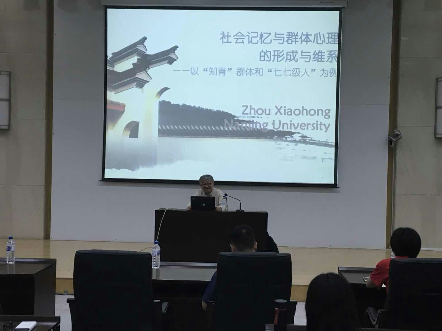 2018年6月2日晚上6点30分,南京大学社会学系教授、博士生导师、教育部周晓虹教授,受邀在吉林大学东荣大厦会议中心二楼多功能厅做了题为“社会记忆与群体心理的形成与维系——以‘知青’ 群体和‘七七级’人为例”的学术报告。本次讲座由哲学社会学院院长田毅鹏教授主持。