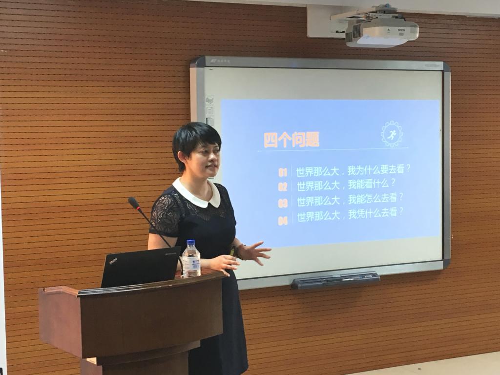 接下来,国际合作与交流处白茵副处长以“心有多大,世界就有多大”为题作了主旨报告。她围绕着“世界那么大;我为什么要去看?世界那么大,我能看什么?世界那么大,我能怎么看?世界那么大,我凭什么去看?”等四个问题展开了详细讨论。白茵老师结合其丰富的海外留学经历和国际合作与交流工作经验,生动有趣、深入细致地对以上问题一一作出了阐述。为了使报告更显亲切,白茵老师还特地采访了我院心理学系张彦彦教授,以她海外求学的生涯为例,为同学们提供了翔实、有效、可靠的留学建议和意见。最后,同学们还踊跃地结合自己实际情况向白茵老师求教,报告在沉甸甸的收获中圆满结束。