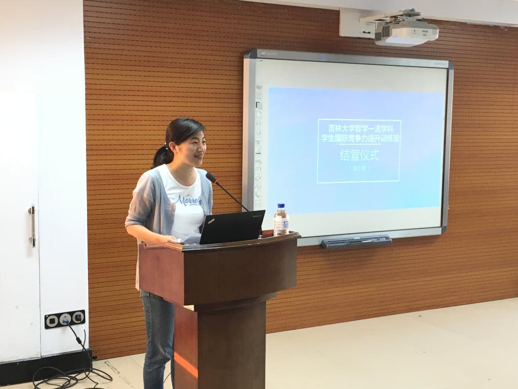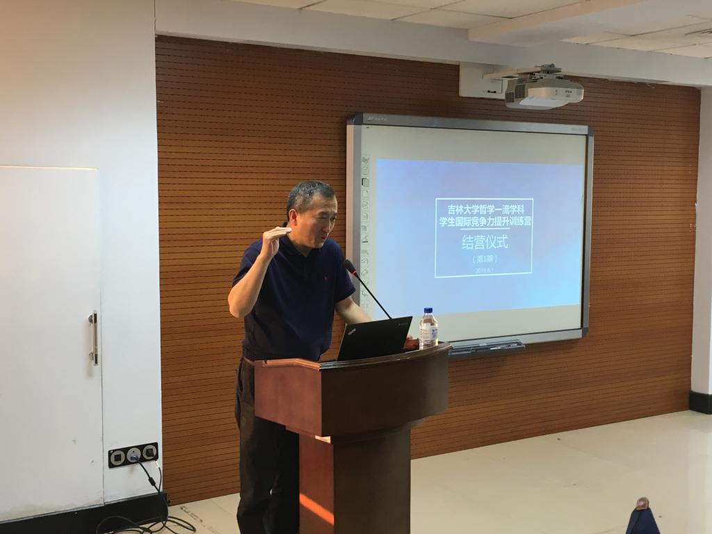 2018年6月1日18时,吉林大学“哲学一流学科学生国际竞争力提升训练营”结营典礼暨学生国际竞争力提升宣讲在吉林大学中心校区东荣大厦A904会议室隆重举行。哲学社会学院院长、教育部“”田毅鹏教授出席典礼并致辞,国际合作与交流处副处长白茵受邀作宣讲报告。结营典礼由哲学社会学院副院长曲红梅教授主持。