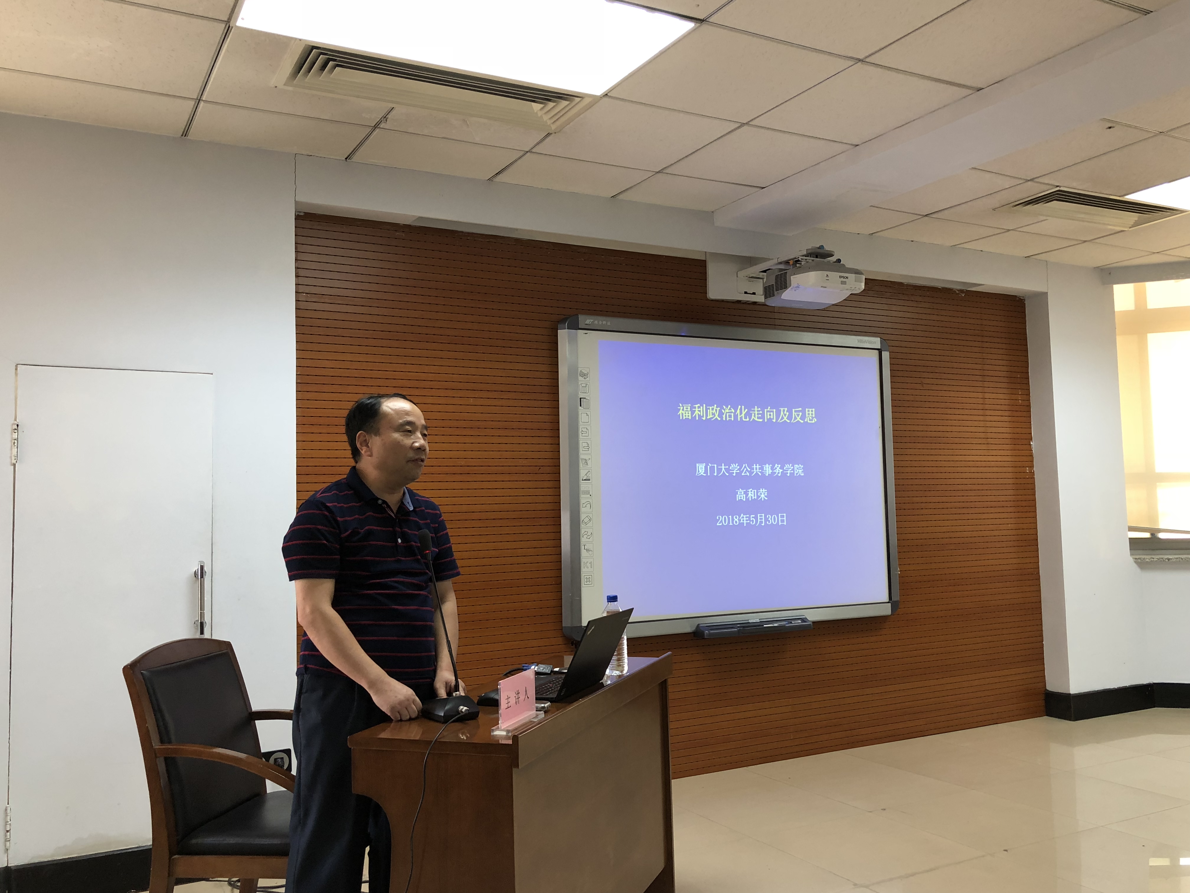2018年5月31日下午1点30分,厦门大学党校副校长、中国社会学学会社会福利专业委员会副理事长、教育部新世纪优秀人才、福建省哲学社会科学领军人才、厦门大学公共事务学院博士生导师高和荣教授,在吉林大学东荣大厦九楼会议室做了题为“福利政治化走向及反思”的学术报告。本次讲座由哲学社会学院劳动与社会保障系系主任董才生教授主持。