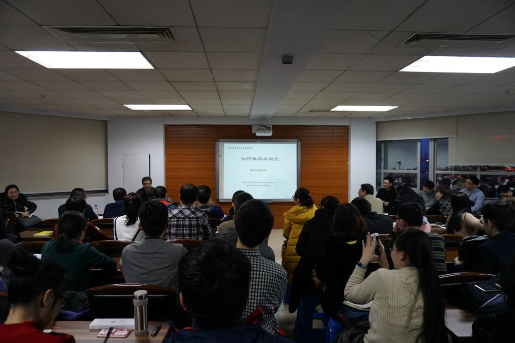 2018年3月16日晚6点,由哲学社会学院和哲学基础理论研究中心共同举办的“学术教育提升工程系列讲座”在新学期继续进行。本场讲座邀请到的是吉林大学哲学社会学院哲学系系主任姚大志教授。讲座题目为“如何做学术研究”。本场讲座由哲学社会学院副院长曲红梅教授主持,哲学社会学院党委书记全华、副院长王庆丰出席了此次活动。