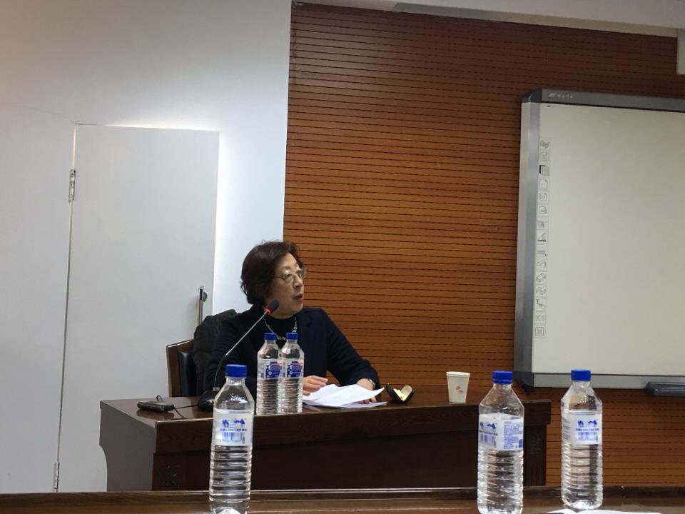 陈立行教授首先从一组数据开始了讲座,她指出,现在日本的60岁以上的人口占总人口的26.4%,中国60岁以上的人口占总人口的16%,日本女人的平均寿命是88.7岁,男人的平均寿命是82.9岁,日本100岁以上的人2017年底有67000人,据推测2030年日本女性50岁以上的人口达到50%(能够看出生育能力的人逐渐在减少),从这些数据能够看出日本社会的高龄化社会的现状。随后教授对少子化问题进行了分析,她提出根据2015年对20岁—45岁男女调查显示,选择不结婚的人中男性占37%、女性占29%,以往社会上有家庭和舆论的压力导致人们很少选择不结婚,现在30%以上的人选择不结婚已经成为普遍性问题,因此选择不结婚不会感到有什么压力。陈教授进一步分析选择不结婚问题时指出,以往很多女性结婚后辞职做专职太太,照顾男人和家庭,男的也不觉的有什么不妥,但是随着女性独立意识的增强和男性缺乏照顾一家人的自信心而很多人选择了不结婚。从2000年左右开始遍地开花的便利店也有可能对男性选择不结婚有直接关系。