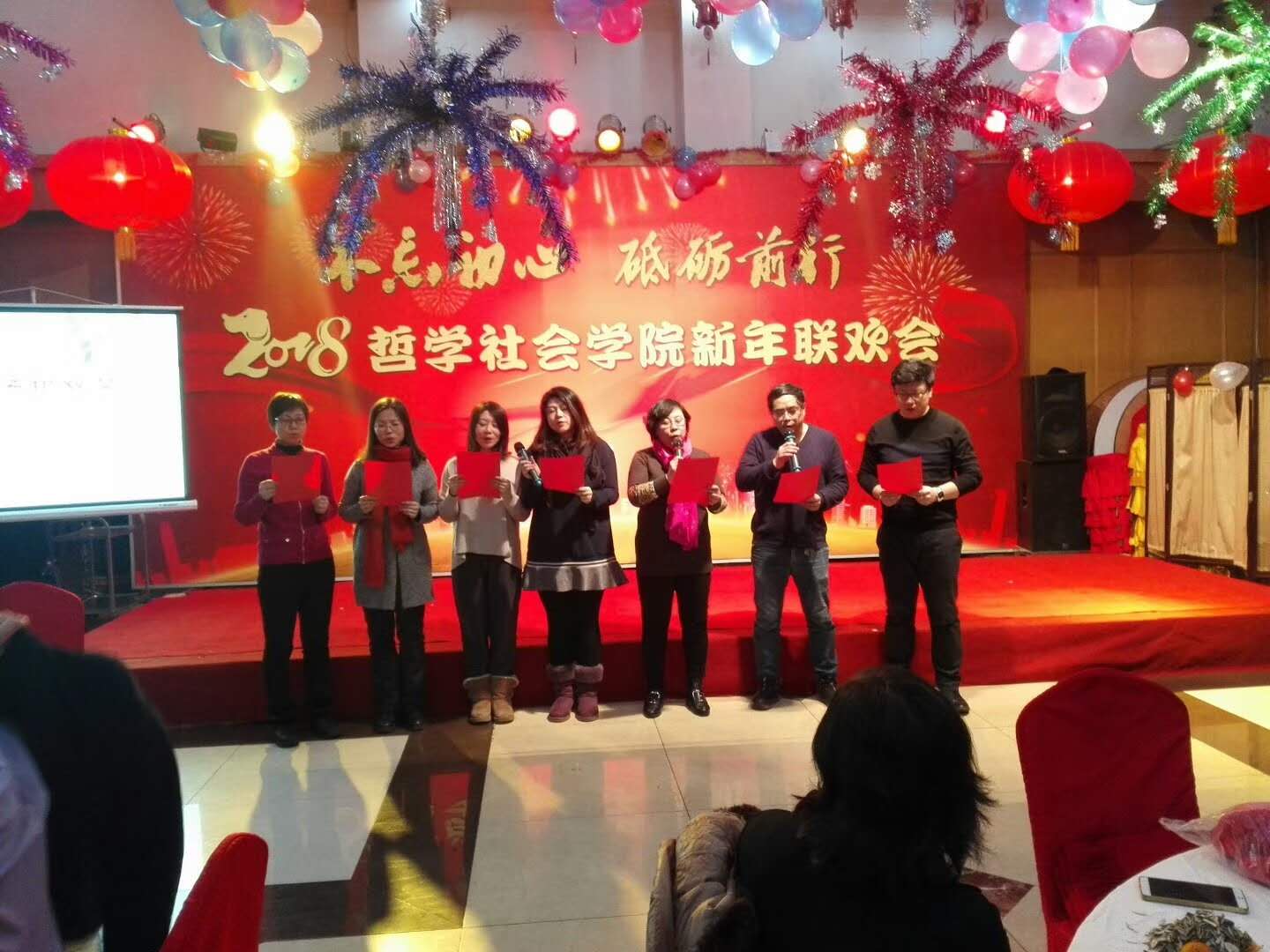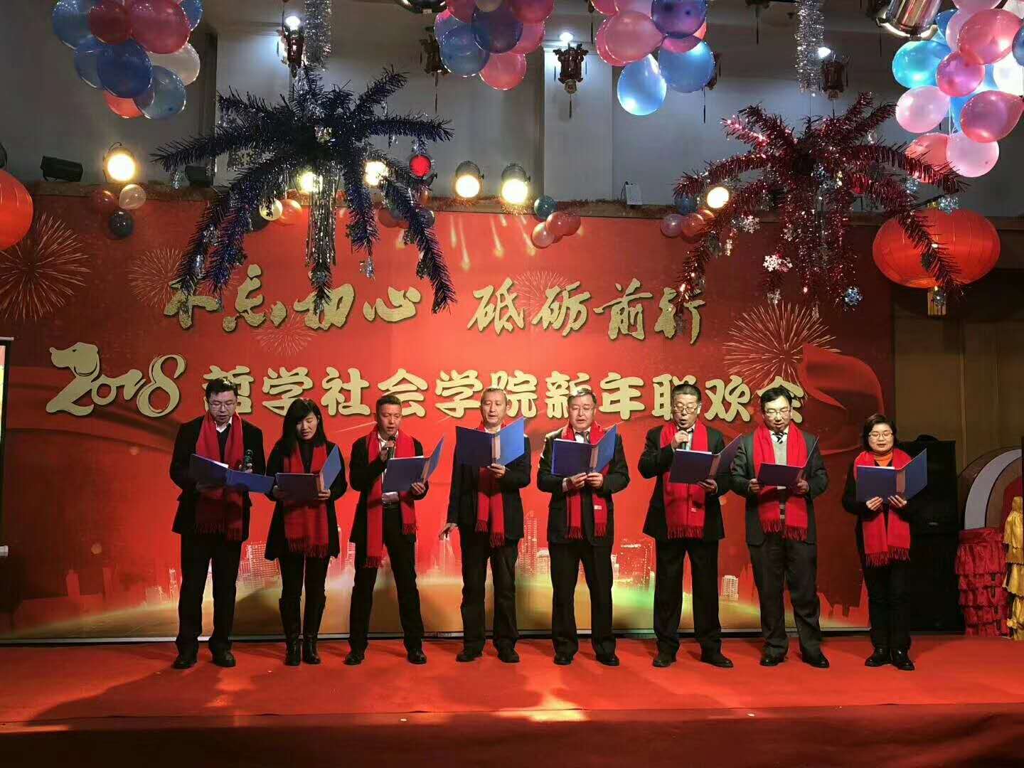 2018年1月11日下午3时30分,“不忘初心 砥砺前行”哲学社会学院新年联欢会在友谊会馆举行,学院全体教职工和学生代表参加了联欢会。