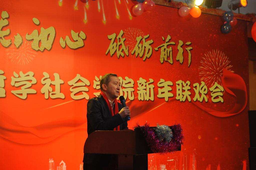 联欢会在哲学社会学院党委书记全华老师的主持下拉开帷幕,哲学社会学院院长田毅鹏老师从科学研究、学科建设、人才培养等方面所取得的成绩对学院2017年工作做了简要总结,并祝愿学院能够在2018年这个同时迎来哲学系建立60周年暨社会学系建立30周年这个大庆之年取得更大的进步。吉林大学哲学社会科学资深教授孙正聿老师表示,“过去了的一切,都将成为亲切的怀恋”,并祝愿大家能度过一个愉快的新年联欢会。