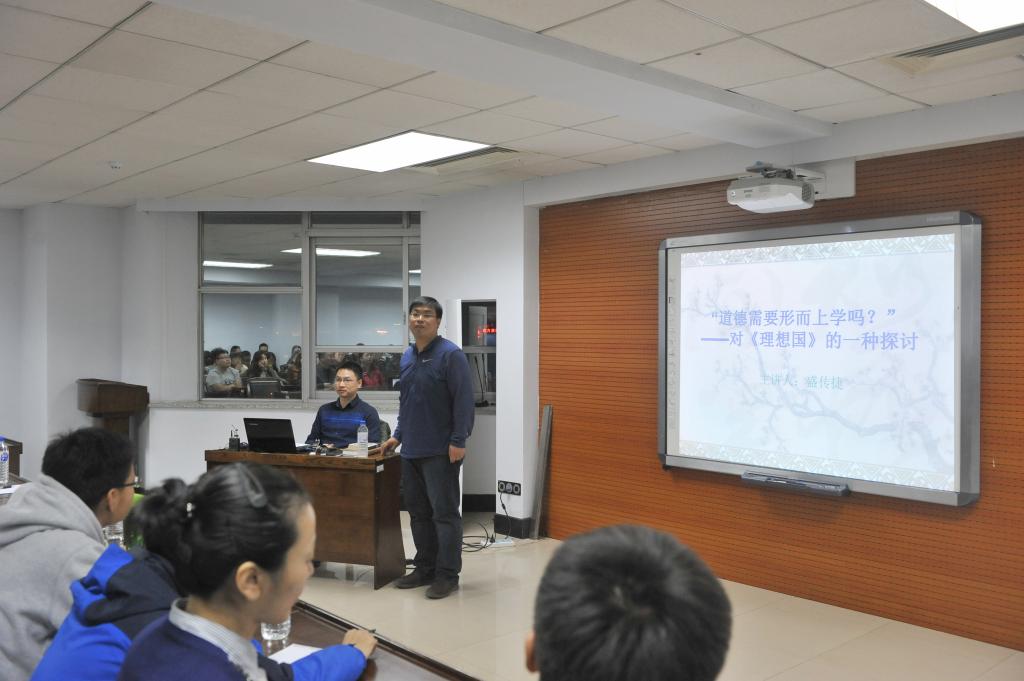 2017年10月24日,吉林大学哲学社会学院青年教师盛传捷在学院做了题为“‘道德需要形而上学吗?’——对《理想国》的一种探讨”的学术讲座。吉林大学哲学社会学院党委书记全华出席了本次讲座并致辞,全书记充分地肯定了本次讲座的意义,并指出学院今后还将陆续开展更多的学术活动。本场讲座由哲学社会学院副院长王庆丰教授主持。