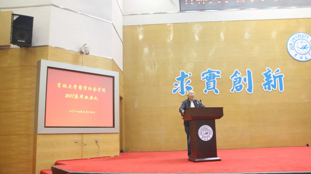 随后,吉林大学资深教授孙正聿老师为毕业生们送上了饱含真情的勉励和祝福。孙老师讲到:“健康的体魄是锻炼出来的,真实的本领是钻研出来的,美好的心灵是修养出来的,成功的人生是拼搏出来的,伟大的理想是共同奋斗出来的”,以此激励毕业生们在未来的人生道路中永保健康的体魄和良好的心态,勇于拼搏、不畏困难,为祖国做贡献,为母校争光彩,孙老师的精彩发言赢得了热烈的掌声。