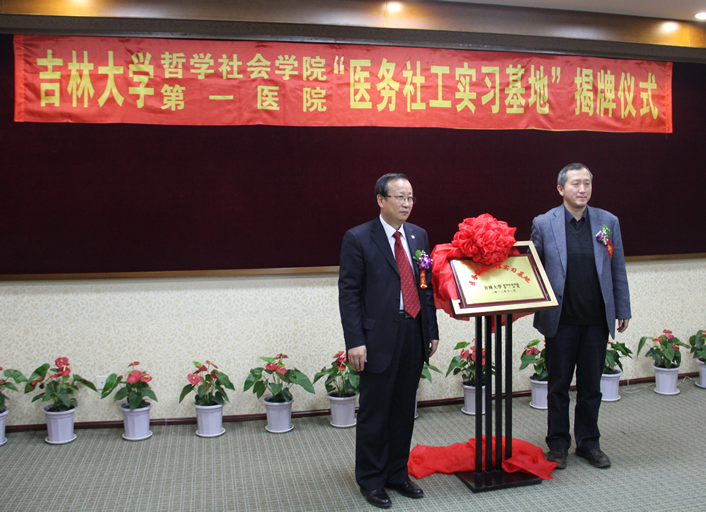 2012年11月30日,田毅鹏、张仕平、李晓玲、芦恒、刘威等社会学系社工教研室老师出席了在吉林大学白求恩第一医院会议室举行的“吉林大学哲学社会学院与吉林大学白求恩第一医院共建‘医务社会工作实习基地’揭牌仪式”。同时,出席仪式的嘉宾还有吉林大学白求恩医学部党委书记屈英和、张东航,白求恩第一医院的副院长薛赤,以及其他医务志愿者。会上,田毅鹏副院长做了简短发言。他强调,“医务社会工作实习基地”的建立,是培养社会工作专业学生和人才运用“助人自助”等相关理念和实务方法介入医疗纠纷、医患关系等过程的重要途径,同时也是“人文关怀”与“以人为本”理念在医疗工作中的主要体现。此外,实习基地的建立也是促进社会工作专业和医务教学工作者组成跨学科研究团队的重要契机,最终在全国率先打造出“医疗社会工作”的教学与科研品牌。