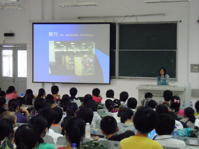 教育活动伊始,首先由吉林大学图书馆的丛立老师对我校的图书馆进行了介绍,并对如何进行图书的查找及借阅进行了详细的讲解。从开闭馆的时间到借阅的流程,以及新生们初次使用可能遇到的问题及其解决方案,丛立老师都一一进行了细致的解说。图书馆教育结束后,吉林大学前卫医院的丁淑艳老师对新生们进行了心理健康教育和卫生保健教育。丁老师向新生们介绍了吉大的前卫医院,医保卡的使用及大学生心理健康的重要性等与新生生活息息相关的问题,使新生们对心理健康及保健有了更深一步的了解。老师们在讲台上认真的讲解,新生们在座位上也专注的听讲,认真的做着笔记。十一时许,在热烈的掌声中,我院的图书馆及心理健康、卫生保健教育圆满结束。