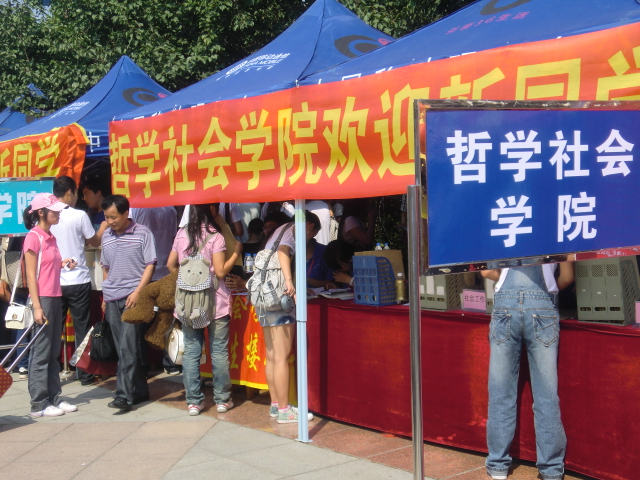 从2011年8月26日中午开始,按照学校的统一安排,哲学社会学院新生接待站布置完毕,迎新工作也随之正式拉开大幕。2011级新生带着高考成功的喜悦和对大学生活的憧憬陆续步入了校园,迎接崭新的生活。在我院党委副书记兼副院长朱丽雅老师、新生辅导员刘畅老师和张洁老师的带领下,由学院学生会、团委成员组成的迎新工作队伍积极策划,悉心安排,使迎新工作有条不紊的进行,让新生及家长充分感受到了哲学社会学院大家庭的温暖。