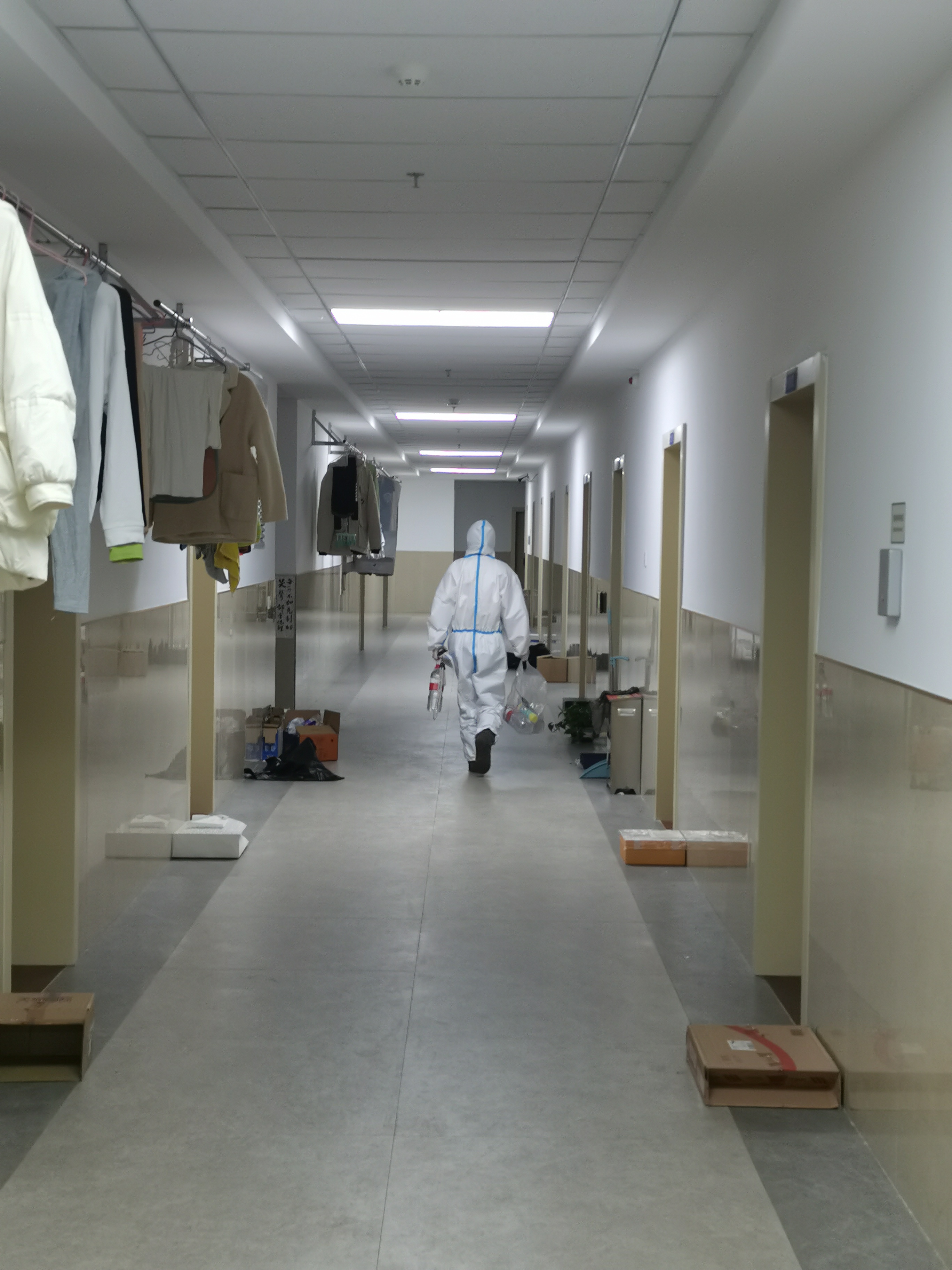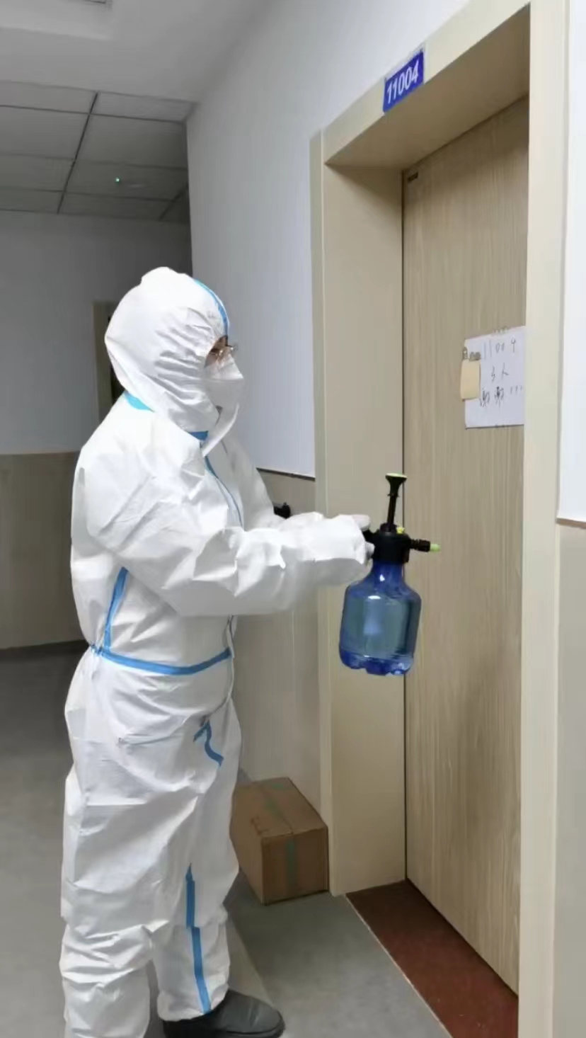 在疫情防控最为严峻的时刻,作为楼层长不仅需要每日巡楼,提醒同学们做好日常防护,同时也要穿上防护服,每天对公共空间和11楼100余间寝室的门把手进行消毒。如果你在此期间,不小心拍了拍我的微信头像,会发现自己同时也拍到了“我的消毒喷瓶”,触发了我的“云消毒”技能。