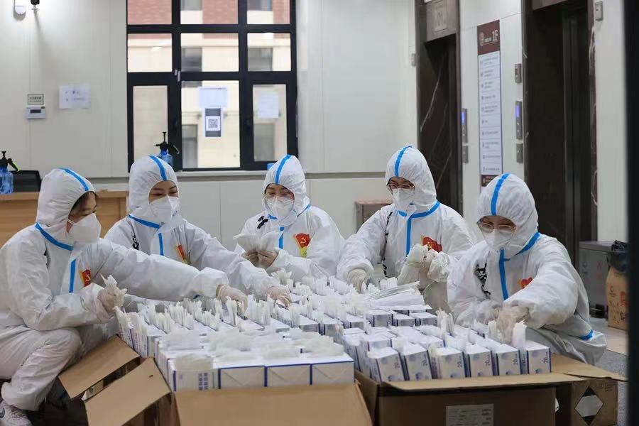 封闭管理意味着师生们的衣食住行、一切事宜都与以往截然不同,学生们的所有日常生活保障都需要依靠驻楼老师和志愿者们的搬运和发放。所有的志愿服务都从零基础开启,所有的服务模式都是在不停的演练中摸索出来的。如何高效配送一日三餐和防疫物资、如何统计核实全楼3700余份全员核酸管数、如何安全合规地穿脱防护服、如何指导学生进行第一次抗原自测、如何带领300余名研究生完成每一次集体活动……每一个新的通知、新的活动,都是新的难题、新的挑战,但也不断开启驻校“大冒险”的下一段征途。