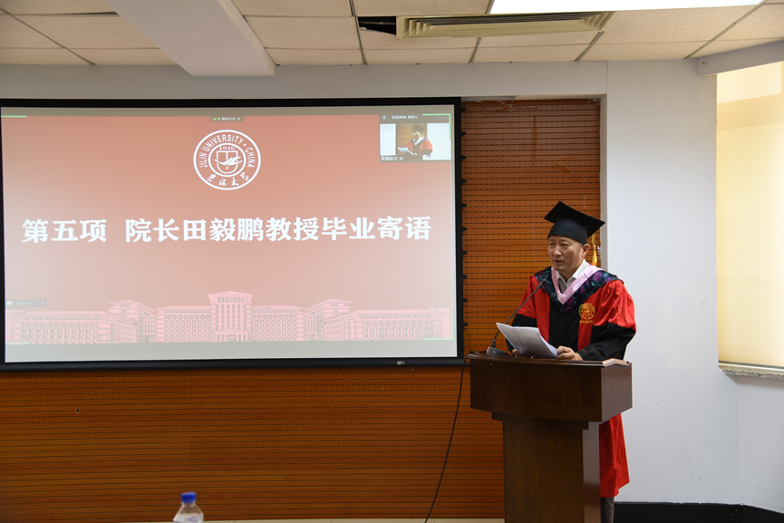 最后,田院长风趣又深情地向同学们说到,他非常荣幸地获得了以一位老教师的身份与大家谈心的机会,希望在此后的日子里,各位同学继续与学院保持联系,不断听到大家在事业和生活上奋斗、成长的好消息,真诚祝福2022届全体毕业生鲲鹏展翅,前程似锦,事业有成!