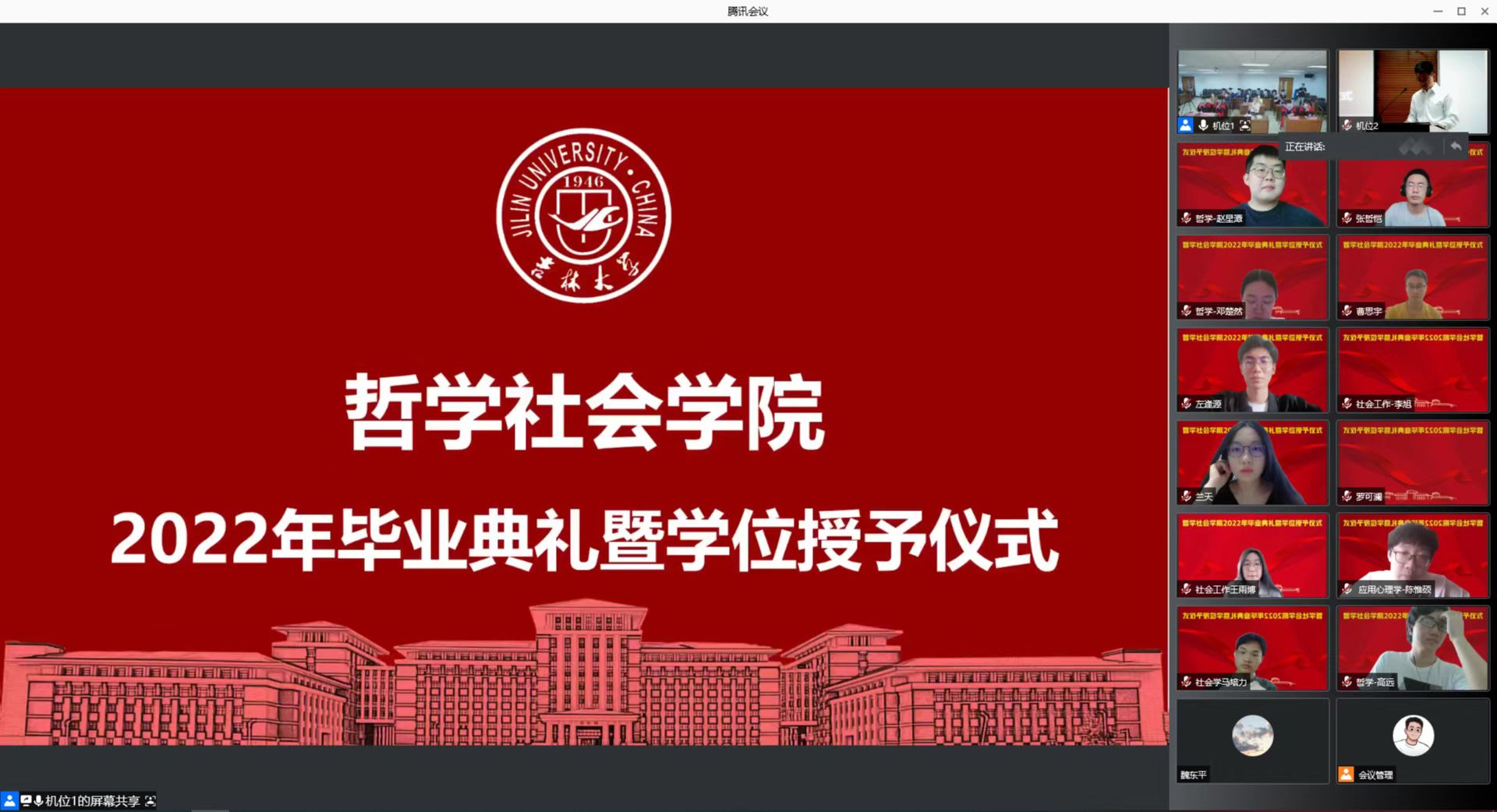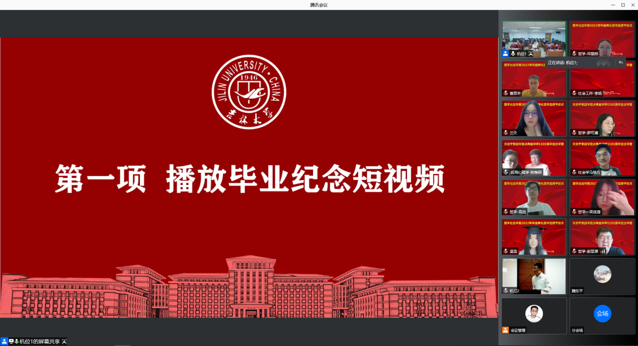 雨霁春花终辞树,新枝夏叶定得荣。2022年6月17日14时,吉林大学哲学社会学院2022年毕业典礼暨学位授予仪式以线上线下相结合的方式如期举行,主会场设在东荣大厦904会议室。