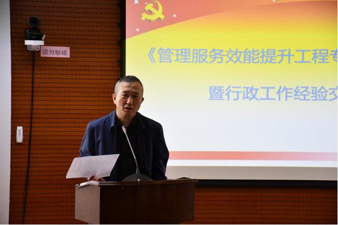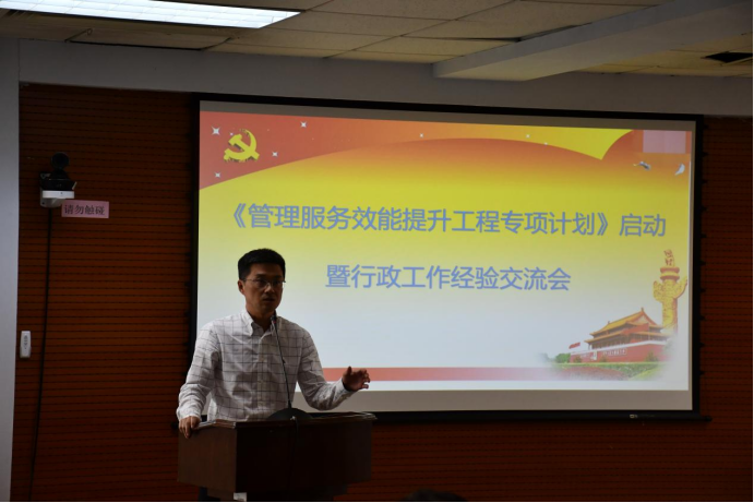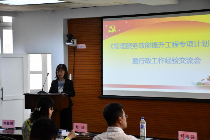 会议第一项,由行政副院长朱文君老师向与会人员介绍《哲学社会学院管理服务效能提升工程专项行动计划》具体内容。朱老师提出,保质保量、快捷迅速地圆满完成行政管理相关工作是哲社向来的优良传统,朱老师总结以往学院在行政管理各方面工作之中取得的成绩和获得的大量经验,对行政管理工作的质量与态度表达了认可。