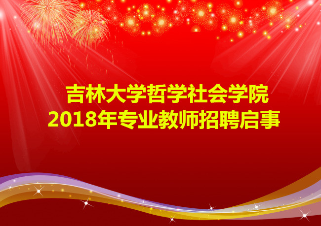 根据吉林大学人力资源和社会保障处《关于下达2018年人员补充计划的通知》,结合学院实际工作需要,吉林大学哲学社会学院2018年拟公开招聘专业教师2名,现将有关事项公布如下: