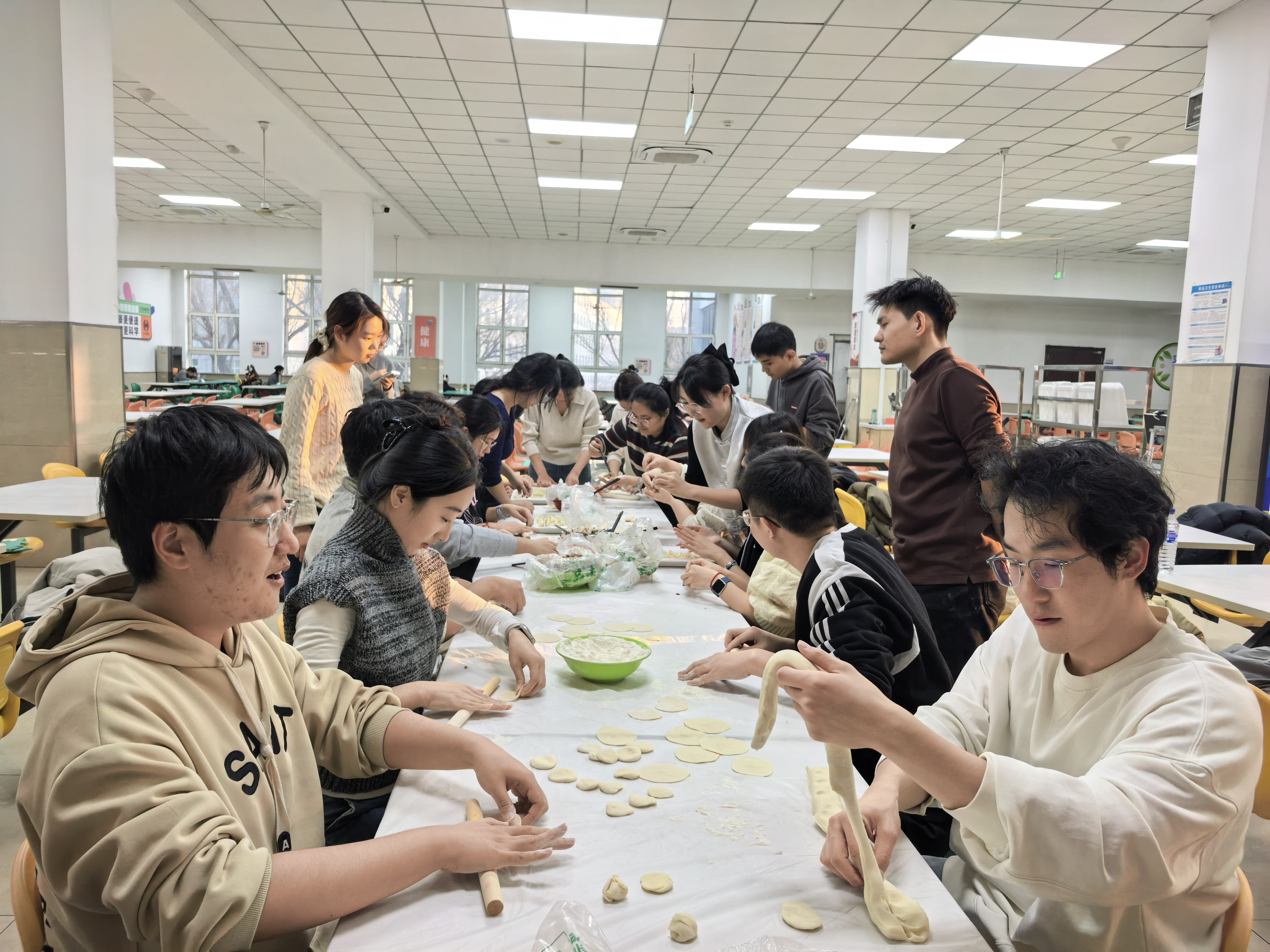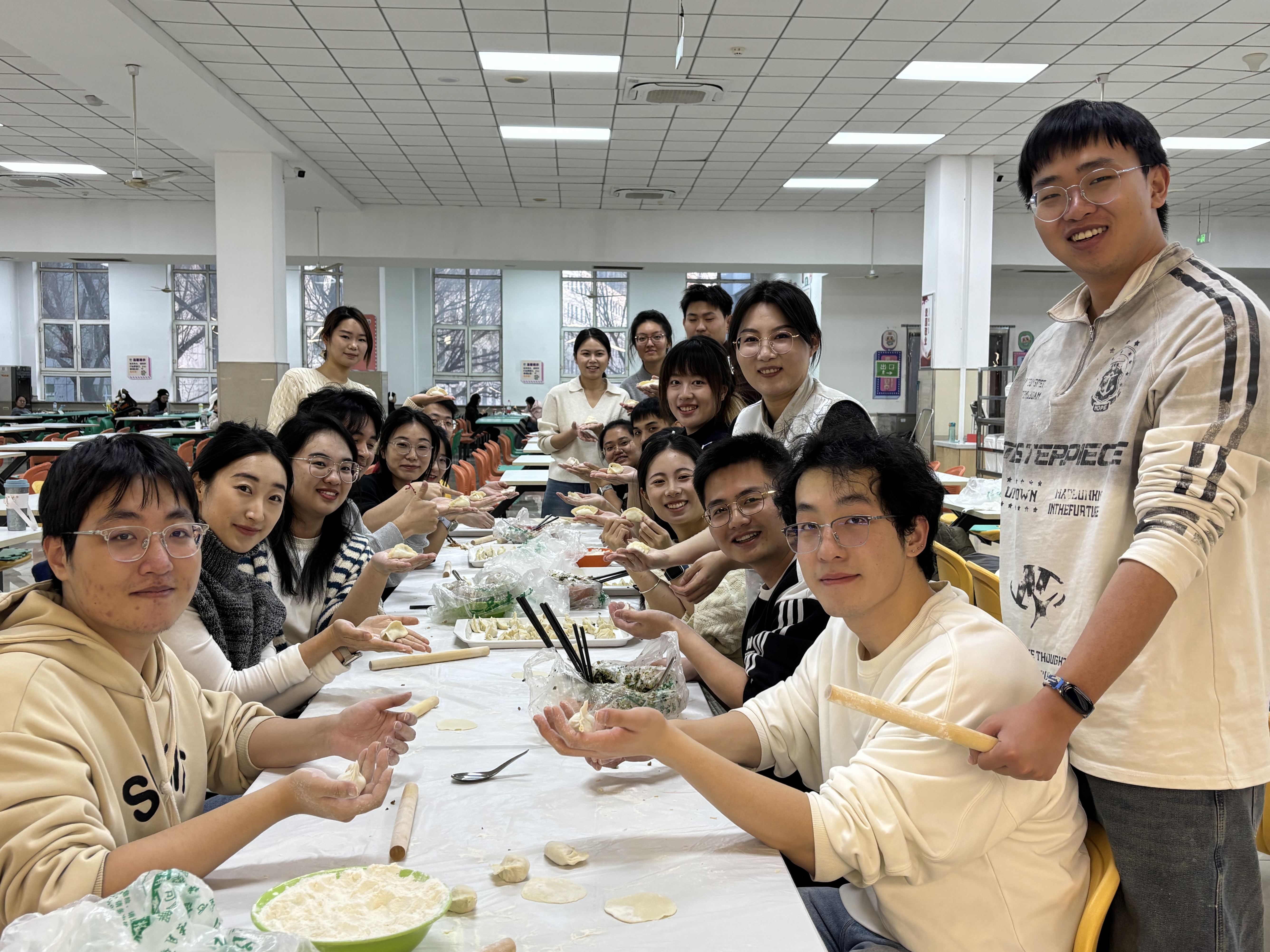 为弘扬中华优秀传统节日文化,增进师生情感联系,提升学院凝聚力,12月20日下午,哲学社会学院研究生会、分团委于中心校区湖畔餐厅组织开展“情暖冬至,‘饺’流‘食’光”冬至主题实践活动。活动在学校饮食服务中心工作人员的协助下顺利开展。学院研究生辅导员于洋老师与研究生会、分团委部分成员共同参与,通过劳动实践传承节日习俗,在温馨互动中凝聚情谊。