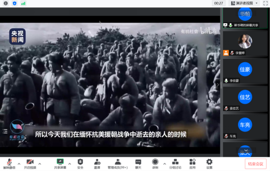 为引导广大青年学生铭记历史、缅怀先烈,珍视和平、奋进未来,哲学社会学院团委于线上组织“弘扬伟大抗美援朝精神”专题学习会。