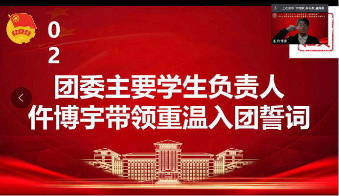 大会第二项,团委主要学生负责人仵博宇带领同学们重温入团誓词,“为共产主义事业而奋斗!”,唤起了同学们当初加入中国共青团的使命感与责任感。
