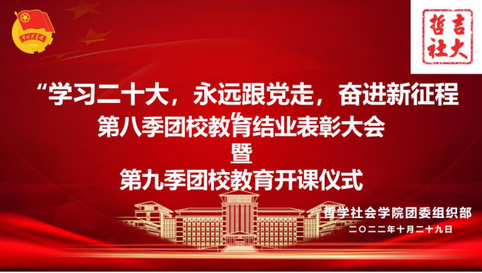 为教育引导全院广大青年学生深入领会党的二十大精神,积极向上,学习成才,努力担当强国使命,为实现第二个百年奋斗目标、实现中华民族伟大复兴的中国梦,作出新的更大的贡献。10月29日晚,哲学社会学院第八季团校教育结业表彰大会暨第九季团课教育开课仪式举行。本次活动由学院团委组织部、新时代理论宣讲团联合举办,面向2022级全体同学。