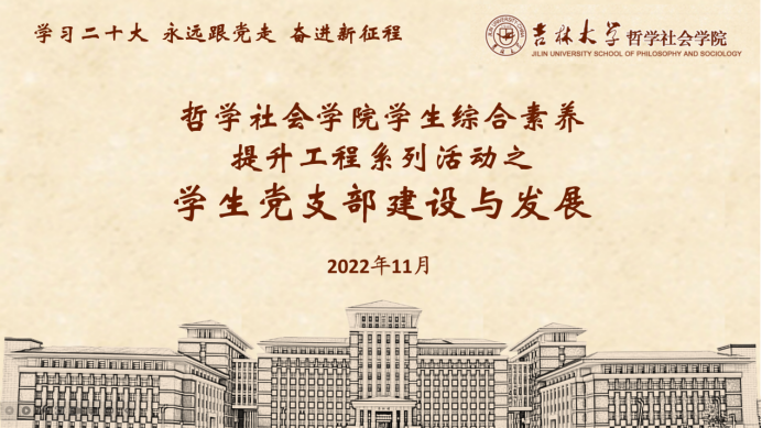 青年强,则国家强。为学习贯彻党的二十大精神,用党的科学理论武装青年,用党的初心使命感召青年,做青年朋友的知心人、青年工作的热心人、青年群众的引路人,努力培养哲社学子成为有理想、敢担当、能吃苦、肯奋斗的新时代好青年,哲学社会学院组织开展学生综合素养提升工程系列活动。