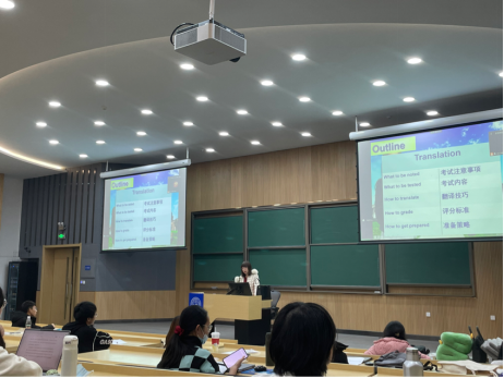 本次讲座邀请到了吉林大学公共外语学院的宋芳菲教授聚焦翻译类题目来讲授。宋芳菲教授拥有海外语言学博士学历,是英国诺丁汉大学访问学者,曾参与高考、四六级考试、研究生入学考试等一系列重要考试的阅卷工作,也拥有丰富的一线教学经验。宋老师以雄厚的实力和丰富的经验吸引、感染了同学们,同学们踊跃参与,努力学习提升自己的英语能力和水平。