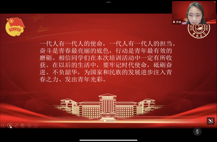 在随后的自由交流环节中,入团积极分子们纷纷就总书记与青年的故事、总书记青年的寄语以及青年应该如何作为进行心得分享。同学们表示,此次课程帮助他们有效梳理了青年在中国共产党百年奋斗中的地位与作用,同时深刻认识到党领导下广大青年取得的巨大成就,在接下来的学习中会继续保持专注度和热情,持续学习,不断奋斗,增强素养。
