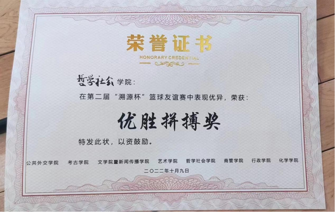 哲学社会学院篮球队队员合力协作,团结一致,奋勇争先,最终取得了优胜拼搏奖。