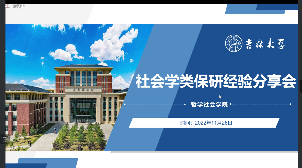 为了帮助同学们熟悉保研流程,掌握保研技巧,制定保研规划,哲学社会学院学生会于近期分别组织开展线上保研经验分享会活动。社会学类专业保研经验分享会邀请到了六位成功保研的师兄师姐,分享自己的成功保研经验,为同学们之后的学习之路提供借鉴。
