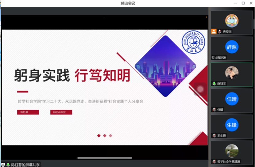 为更好开展哲学社会学院寒假社会实践活动,院团委召开经验分享会,邀请学院四位本科生分享自身社会实践经验。分享会由房安国同学主持,22级全体同学参会。