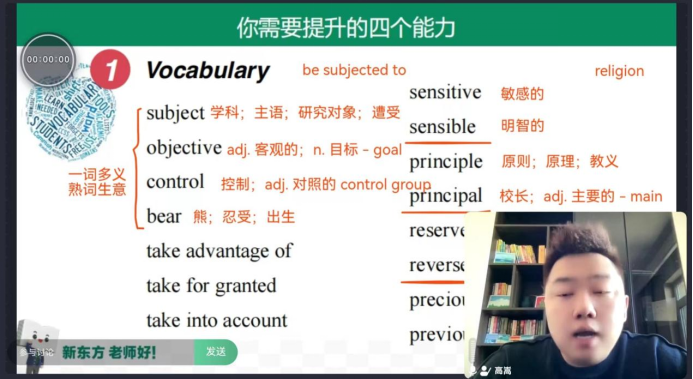 接着,高老师向同学们介绍了雅思考试的时间安排和阅读题型,并重点强调了时间分配问题。在此基础上,老师向大家提出了语法、词汇、逻辑等应试必备能力,并结合具体例子帮助大家检验自我与提升能力。