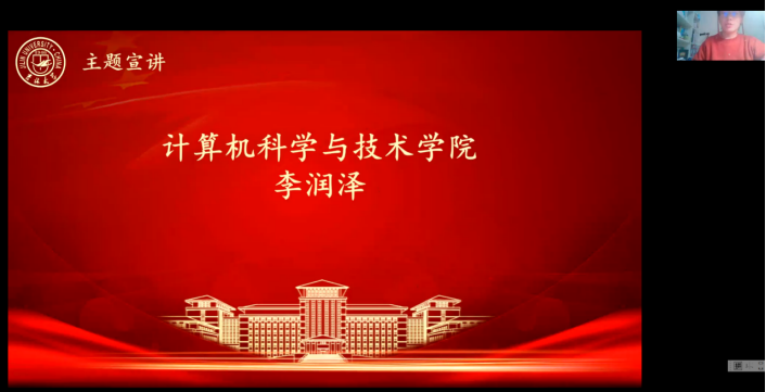 行政学院毕妍欣同学以“追溯红色起点,弘扬建党精神”为主题,和大家分享了两部分内容。第一部分,“天下将兴,其积必有源”。她提到,从当年“红旗到底打得多久”,到今天“中国共产党为什么能”,疑问正在变为赞叹,实践给出了答案。第二部分,“精神是历史的升华,历史是精神的展开”。那在雪夜里率先觉醒、在黑暗中擎起明灯、义无反顾站了出来的始终都是中国共产党的先驱们。我们坚信,党必将团结带领全国各族人民继续创造新的更大奇迹。