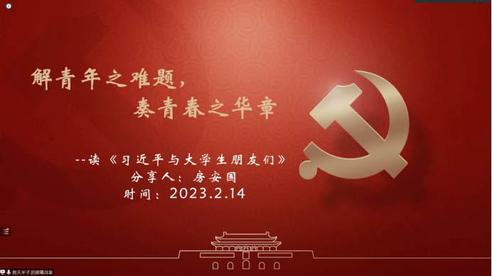 2023年2月14日晚六点,寒假红色经典阅读活动第七期如期举行。来自哲学社会学院、经济学院、文学院暨新闻与传播学院、行政学院、计算机科学与技术学院的五名主讲同学分别讲述了自己的读书心得。本次读书会由哲学社会学院范欣竹同学主持。