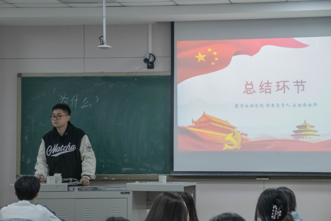 最后,由我院团委负责人宋绍伟老师向同学们进行心得分享和总结。宋老师从本次团代会的主题出发,结合党史团史,从“为什么”“做什么”“怎么做”三个角度切入提到,作为青年学子,我们务必坚持用习近平新时代中国特色社会主义思想铸魂强基,坚定不移听党话,矢志不渝跟党走;正确认识党领导中国人民过去五年工作和新时代十年伟大变革,赓续“党旗所指就是团旗所向”的光荣优良传统,将砥砺奋斗融入日常、化作经常,在新时代创造出不负青春、不负人民的贡献。