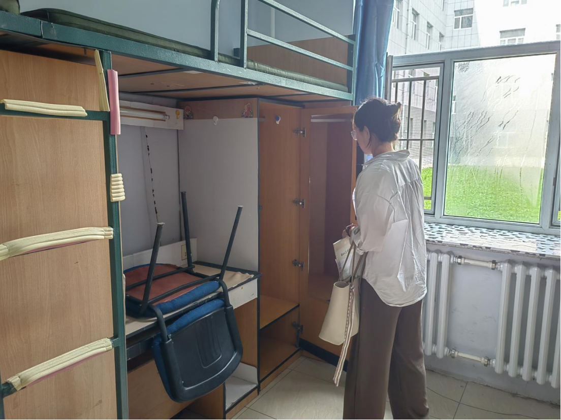 经过短暂的休整,宋老师和同学们来到宿舍了解新同学们的住宿情况。老师和同学们将早早设计好的学院标识和学生住宿标识认真张贴,仔细检查了寝室硬件设施,发现问题向宿舍管理人员及时求助解决。同时,师生们利用已有的清扫工具对新同学们的宿舍进行了打扫整理,为新同学营造卫生干净的住宿环境。