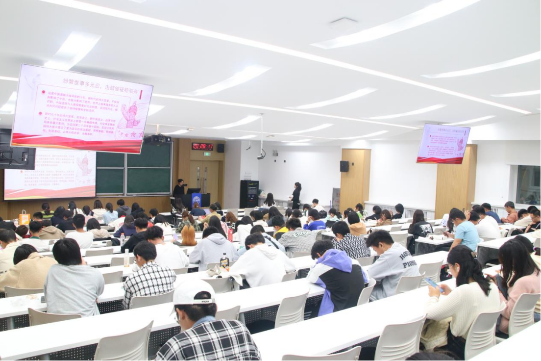 习近平总书记在党的二十大报告中系统总结了新时代十年的伟大变革以及其在党史、新中国史、改革开放史、社会主义发展史、中华民族发展史上所具有的里程碑意义。为引导我院青年学子积极学习党的二十大精神,促进学思用贯通、知信行统一,9月24日晚,我院团委组织开展“自信自强新启程——深刻理解新时代十年伟大变革”主题微团课比赛。本次比赛由22级孙晓月、赵家仪同学主持,我院团委主要学生负责人同学们、2023级全体本科生以及部分学生党员们共同出席本次活动。