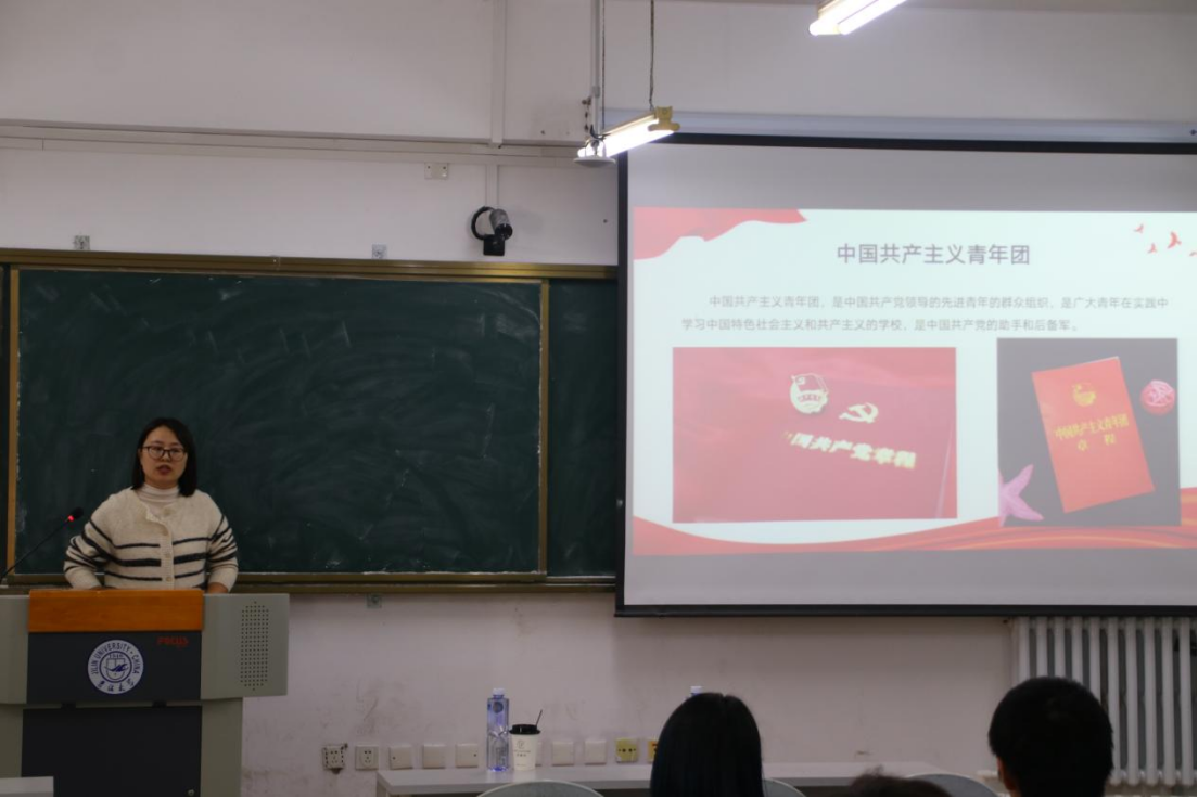 青春孕育无限希望,青年创造美好明天。叶超老师首先向同学们提出了一个问题——“为什么加入中国共青团”,她指出中国共青团作为中国青年运动的先锋队、作为党的忠实助手和可靠后备军,在党的领导下团结带领团员青年为实现中华民族伟大复兴中国梦作出了重要贡献,发挥了重要作用。老师强调,入团不仅仅意味着一种光荣,更意味着一种责任;同学们务必端正入团动机,坚定理想信念,锤炼意志品质,将“爱党、爱国、爱团”自觉转为的信仰认同。