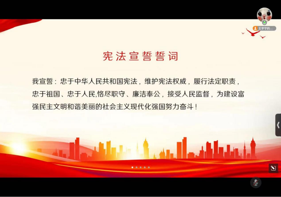 活动接近尾声,王宇宁同学以一段视频对本次活动进行了总结。最后,她鼓励团员们将学到的宪法知识运用到实际生活中,自觉践行宪法精神,为构建法治校园、法治国家贡献自己的力量。